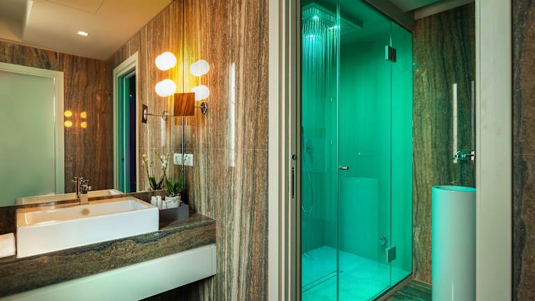 Die Zimmer bieten ein angenehmes Raumklima durch Klimaanlage und Heizung. Zu den Standardausstattungen gehören ein Balkon, ein Doppelbett, ein Queensize-Bett oder ein Kingsize-Bett, sowie eine Minibar, ein Schreibtisch und ein Minikühlschrank. Die Badezimmer sind mit einer Dusche und einer Badewanne ausgestattet, zudem stehen Bademäntel und Kosmetikartikel zur Verfügung. Rollstuhlgerechte Zimmer sind buchbar.