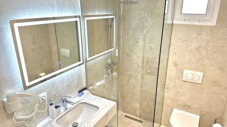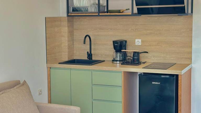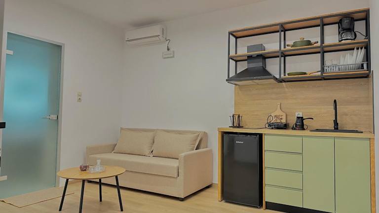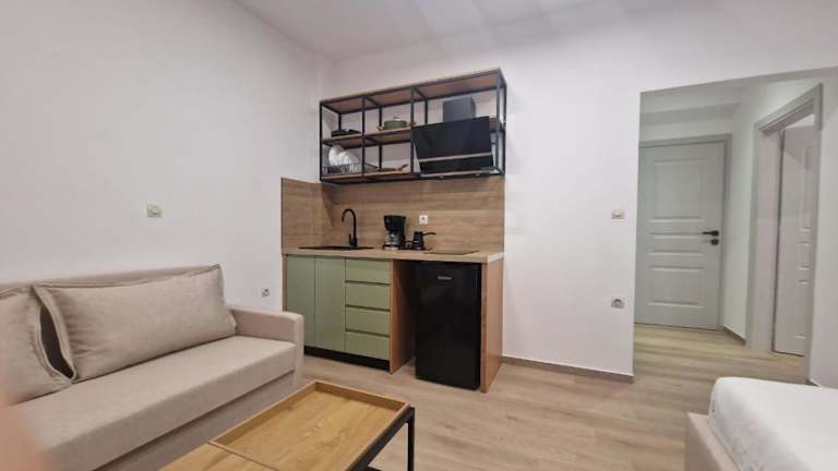 Die Unterkunft bietet voll ausgestattete Wohneinheiten mit einem Sitzbereich, einem Satelliten-Flachbild-TV und einer modernen Küche, die über einen Kühlschrank und eine Herdplatte verfügt. Jedes Zimmer hat ein eigenes Badezimmer mit Dusche und kostenlosen Pflegeprodukten. Alle Wohneinheiten verfügen zudem über einen Balkon mit Meerblick.