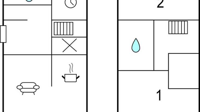 Das Ferienhaus besteht aus 2 Schlafzimmern, einem Wohnzimmer, einer voll ausgestatteten Küche sowie einem Badezimmer mit Dusche.