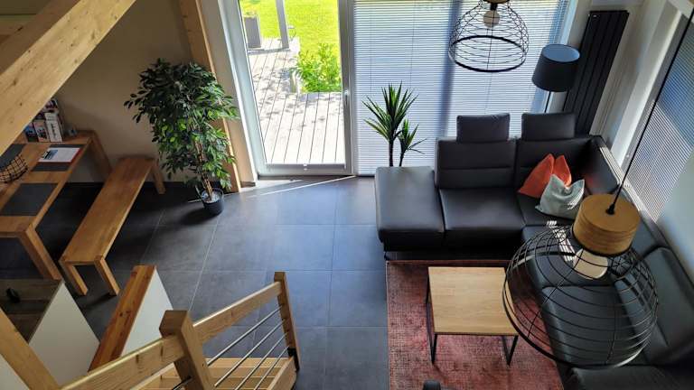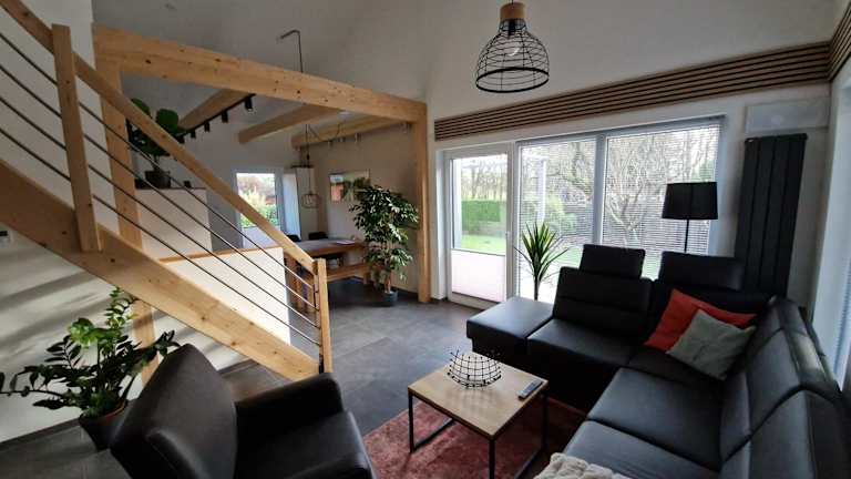 Die Ferienwohnung bietet ein Wohnzimmer, einen Essbereich, zwei Schlafzimmer sowie ein Badezimmer mit Dusche. Sie hat eine Küchenzeile ausgestattet mit Kühlschrank, Geschirrspüler und Ofen. Zur Ausstattung gehören auch ein Blu-ray-Player sowie bereitgestellte Handtücher und Bettwäsche.