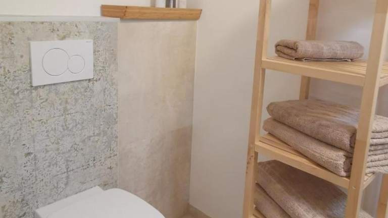 Die Ferienwohnung verfügt über ein Schlafzimmer sowie ein Badezimmer, das mit einer Dusche und einem Haartrockner ausgestattet ist. Handtücher und Bettwäsche werden bereitgestellt.