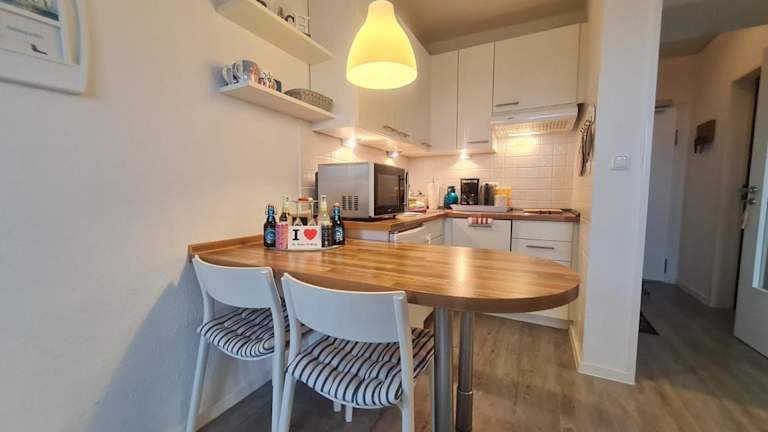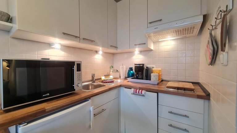 Die Ferienwohnung besteht aus einem Schlafzimmer, einem Wohnzimmer, einer voll ausgestatteten Küche und einem Badezimmer mit Dusche und Haartrockner. Handtücher und Bettwäsche werden bereitgestellt. Es sind Nichtraucherzimmer vorhanden.