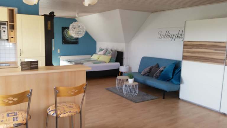 Die Unterkunft Lieblingsplatz bietet eine Ferienwohnung, die mit einem Schlafzimmer und einem Badezimmer ausgestattet ist. Sie verfügt über eine Terrasse mit Gartenblick, einen Balkon sowie kostenlose Parkiermöglichkeiten und kostenfreies Wifi. Diese Privatunterkunft wird von einem privaten Gastgeber geführt und erlaubt keine Junggesellen- oder Junggesellinnenabschiede.