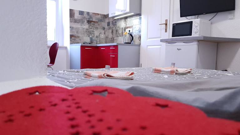 Die Wohneinheiten verfügen über eine voll ausgestattete Küche mit Esstisch, einen Flachbild-TV mit Satellitenkanälen und ein eigenes Badezimmer mit Dusche, kostenlosen Pflegeprodukten und Haartrockner. Zur Ausstattung gehören Kühlschrank, Mikrowelle, Herdplatte und Wasserkocher.