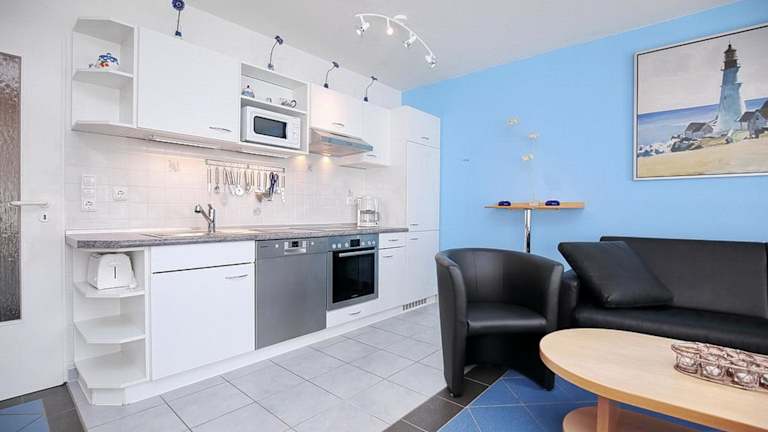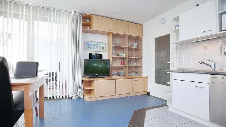 Die Ferienwohnung umfasst 1 Schlafzimmer und ist mit einem TV mit Satellitenkanälen sowie einer voll ausgestatteten Küche ausgestattet. Diese bietet den Gästen einen Kühlschrank, Geschirrspüler, Waschmaschine, Ofen und Herdplatte. Es sind jedoch keine Bettwäsche und Handtücher im Preis inbegriffen, es besteht aber die Möglichkeit, diese gegen Gebühr zu mieten.