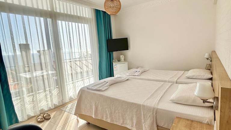Die Zimmer im Likya Inn sind mit Klimaanlage, Kleiderschrank, einem Balkon mit Meerblick, einem eigenen Badezimmer, Flachbild-TV, Bettwäsche und Handtüchern ausgestattet. Jedes Zimmer verfügt über einen Wasserkocher und einige Zimmer sind zusätzlich mit einer Küchenzeile, Herdplatte und Toaster ausgestattet. Alle Gästezimmer bieten auch einen Kühlschrank.