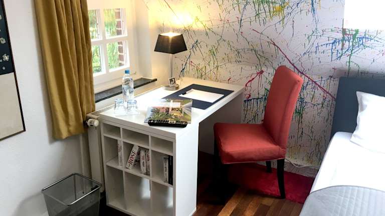 Ein verwunschener Ort, an dem man wunschlos glücklich ist. Sehr schöne Location, sehr nette Inhaberin und Mitarbeiterin, tolles Frühstück, saubere und geschmackvoll eingerichtete Zimmer. Wer Ruhe sucht, kann hier ideal abschalten. Aufgrund der nah gelegenen Innenstadt von Münster, kommen aber auch Kulturliebhaber und Shopping-Freunde auf ihre Kosten. Hunde dürfen hier ebenfalls mitreisen.