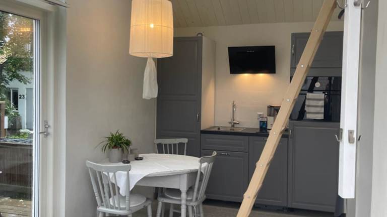 Lilla kyrkhuset på Råå bietet Übernachtungsmöglichkeiten in einer heimeligen Ferienwohnung mit verandierter Terrasse und Gartenblick. Die Unterkunft hat eine angenehme und einladende Atmosphäre.