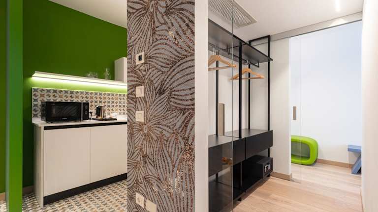 Die Wohneinheiten sind mit einer Terrasse oder einem Balkon ausgestattet, die einen Blick auf die Stadt und die Berge bieten. Jede Einheit verfügt über eine Klimaanlage, einen Sitzbereich, einen Satelliten Flachbild-TV sowie eine Küche. Ein eigenes Badezimmer mit Bidet und kostenlosen Pflegeprodukten sowie ein Haartrockner sind ebenfalls vorhanden.