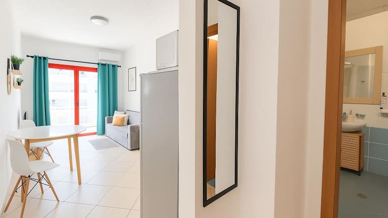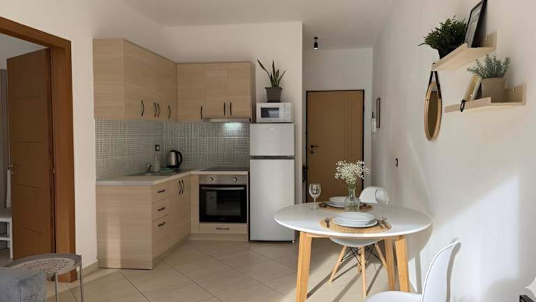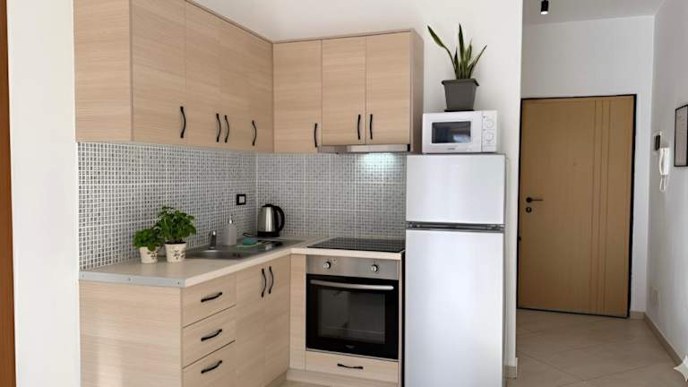 Die Ferienwohnung besteht aus einem Schlafzimmer, einem Wohnzimmer und einer voll ausgestatteten Küche mit Kühlschrank und Wasserkocher. Zudem ist ein Badezimmer mit Bidet und Dusche vorhanden. Handtücher und Bettwäsche werden bereitgestellt.