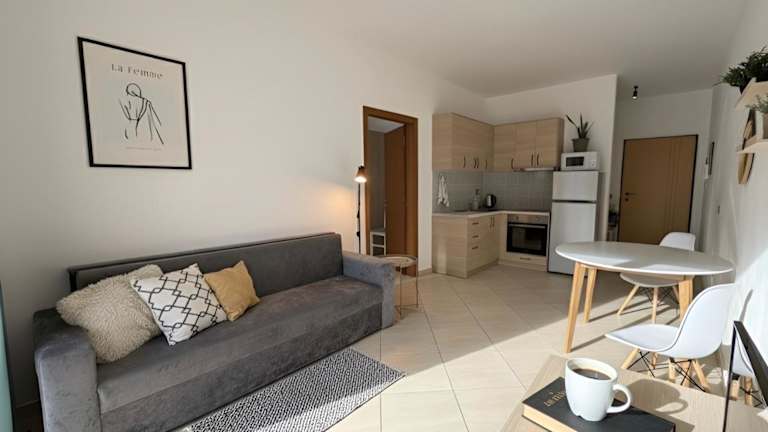 Lilly's Apartment Plazh bietet den Gästen eine einladende Ferienwohnung mit Balkon und Blick auf die Berge sowie die Stadt. Die Ausstattung umfasst kostenloses Wifi und Klimaanlage, was für eine angenehme Bequemlichkeit sorgt.