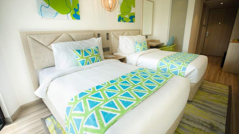 Die Zimmer des Lime Resort Manila bieten ein schönes Ambiente, häufig mit Meerblick. Sie sind ausgestattet mit einem Doppelbett oder einem Kingsize-Bett. Zustellbetten können angefordert werden. Des Weiteren sind ein Safe, ein Schreibtisch, ein Kühlschrank sowie eine Tee-/Kaffeemaschine vorhanden. Zur Bequemlichkeit der Gäste gehören ein Telefon, Sat-TV, und Wifi (ohne Gebühr). In den Badezimmern stehen Haartrockner, Kosmetikartikel sowie eine Auswahl an Handtüchern zur Verfügung. Die Unterbringung bietet auch Familien- und Nichtraucherzimmer.