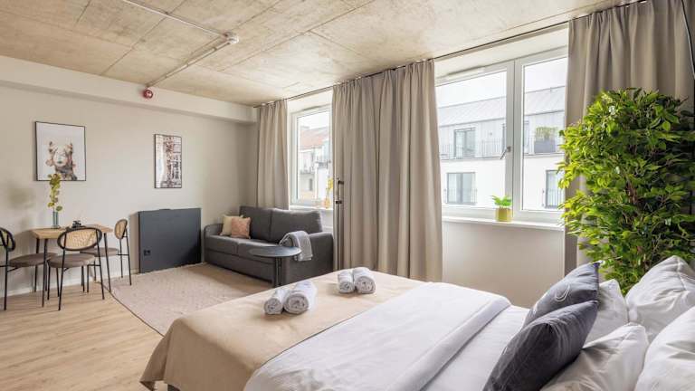 Die Unterkunft limehome Düsseldorf Stresemannstrasse - Digital Access bietet ein modernes Ambiente mit einem Fitnesscenter, einer Gemeinschaftslounge und einer Terrasse. Das Design und Layout der Fertigwohnungen können von den dargestellten Fotos abweichen. Es handelt sich um Nichtraucherunterkünfte, die ausschliesslich für den privaten Gebrauch bestimmt sind und keine Feierlichkeiten oder gewerbliche Aktivitäten gestatten. Der Check-in erfolgt unkompliziert über einen Online-Prozess.