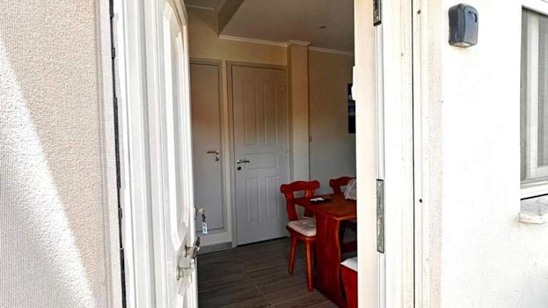 Das Ferienhaus bietet ein Schlafzimmer, eine gut ausgestattete Küche mit Kühlschrank und Mikrowelle sowie einen weiteren Sitzbereich. Die Ausstattung umfasst zudem einen Flachbild-TV und ein Badezimmer mit Dusche.
