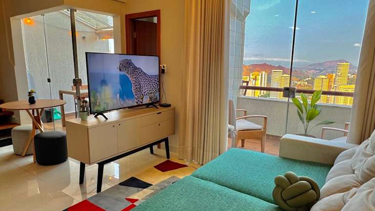 Die Unterkunft Linda cobertura no Vila da Serra bietet einen schönen Gartenblick und überzeugt durch Übernachtungsmöglichkeiten mit einer Terrasse und einem Balkon. Die klimatisierte Unterkunft stellt einen Privatparkplatz vor Ort sowie kostenloses Wifi zur Verfügung.