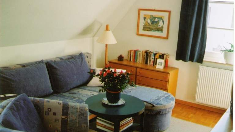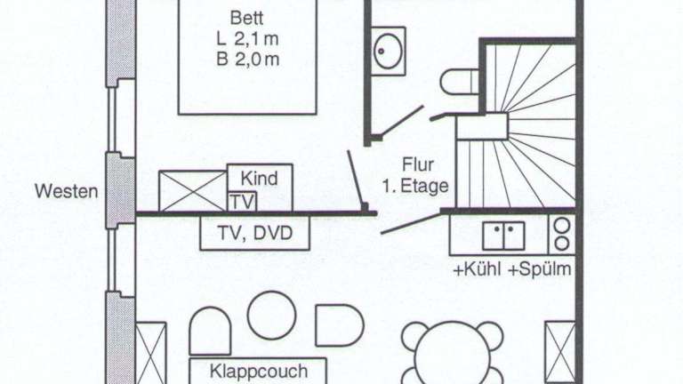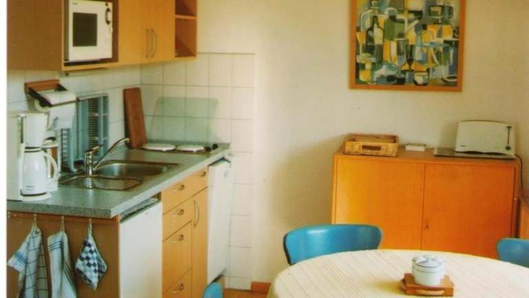 Die Ferienwohnung umfasst ein Schlafzimmer, ein Wohnzimmer und eine voll ausgestattete Küche. Diese ist mit einem Kühlschrank und einer Kaffeemaschine ausgestattet. Das Badezimmer verfügt über eine Dusche und eine Badewanne. Es stehen Gartenmöbel zur Verfügung, um die Umgebung des Gartens zu geniessen.