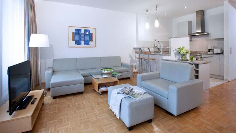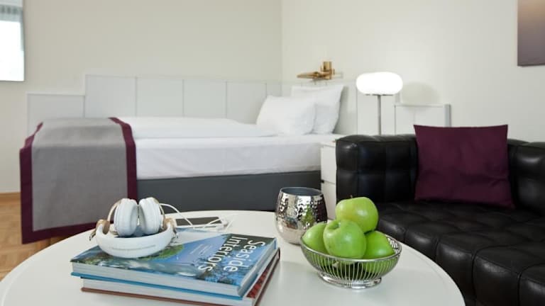 Das Lindner Boardinghouse Rheinhof bietet moderne Studios, die mit einer Küchenzeile und einem Balkon ausgestattet sind. Die Räumlichkeiten zeichnen sich durch Bequemlichkeit und eine heimelige Atmosphäre aus, ideal für längere Aufenthalte oder Ferien.