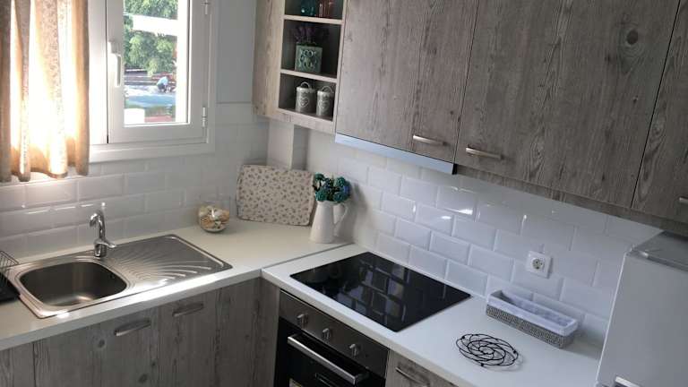 Die klimatisierte Ferienwohnung umfasst 1 Schlafzimmer, ein Wohnzimmer, eine voll ausgestattete Küche mit Kühlschrank und Kaffeemaschine sowie ein Badezimmer mit Dusche und Haartrockner. Handtücher und Bettwäsche werden zur Verfügung gestellt, und ein Balkon bietet einen schönen Blick auf das Stadtleben und das Meer.