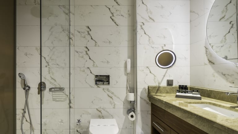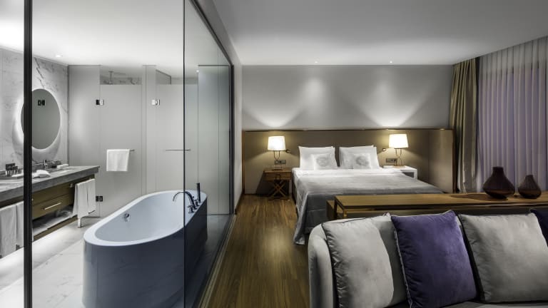 Fitness and Spa; You can start your day by working out on our fitness center equipped with the state of art technology work out gear and swimming on our semi Olympic pool. A refreshing Spa massage will relax your muscles and reduce stress after a long day. • 1500 m2 SPA center • Indoor swimming pool • Free Spa and fitness entrance • Fully equipped gym & fitness center • Turkish Bath for Ladies and Gentlemen • Sauna for Ladies and Gentlemen • Steam Bath / Hot Pool • 5 massage rooms • 1 VIP massage room (Turkish bath, sauna and steam room for two) • Hairdresser and barber