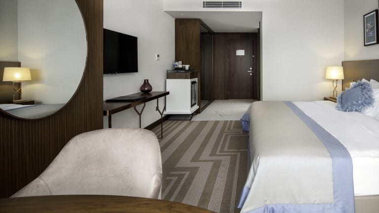 Superior Room; Lionel Hotel Istanbul offers all services required for comfort and peace of our guests at 131 Superior Rooms, each vary between 28 m2 to 30 m2. The city’s lively and dynamic scenery accompanies the luxury of staying in Superior Rooms that reflect the panoramic Istanbul view on its décor. King size or twin bed options are available in Superior Rooms and a third bed or children bed might be added to the room for 3-person stays. Guests wishing to stay with their families can join the rooms. • 1 king size or 2 twin beds • 24m2-28 m2 - 30 m2 • Free Wifi • Satellite TV, LDC television • Coffee / tea maker • Minibar • Electronic safe suitable for laptops • Desk • Iron and ironing board • Smoke detector Deluxe Room; 28 m2 Deluxe Rooms of Lionel Hotel are inspired by contemporary interpretations of Istanbul silhouette and it offers a premium and quality hotel stay experience. Deluxe rooms with king size bed options are a unique alternatives for guests wishing to relax in a joyful and comfortable environment after a busy day. • 1 king size bed • 30 m2 • Bathrooms with separate bathtub and shower • Free Wifi • Satellite TV, LCD Television • Nespresso and tea maker • Minibar • Electronic safe suitable for laptops • Desk • Free Lounge service • Hair dryer • Iron and iron board • Fire detector Executive Rooms; Lionel Hotel's 35 m2 Executive Rooms are designed with inspiration from contemporary interpretations of the Istanbul skyline and offer a high-quality hotel accommodation experience. • 1 king size bed, • Free wi-fi, • Satellite channels, • LCD TV, • Coffee/tea maker, • Minibar, • Electronic safe that can house a laptop, • Study table, • Iron and ironing board • Smoke detector • Hair dryer Corner Suite; 50 m2 Corner Suites of Lionel Hotel Istanbul provide a spacious living space to distinguished guests looking for premium comfort. Besides services available to all other rooms, this category has spacious living and work areas. The modern and chic architecture of the room design interprets Istanbul scenery and offers a unique experience. • 1 king size bed • 50 m2 • Dressing Area • Bathrooms with double marble sinks, separate bathtub and showers • Free Wifi • Satellite TV, LCD Television • Nespresso and tea maker • Luxury bath products • Minibar • Electronic safe suitable for laptops • Desk • Free Lounge service • Hair dryer • Iron and iron board • Fire detector Junior Suite; 50 m2 Junior Suites decorated with a romantic ambience offer a premium living space to distinguished guests of Lionel Hotel. Besides services available to all other rooms, this category has spacious living and work area, decorative fireplace and the room décor is completed with details inspired by the story of Hezarfen Ahmet Çelebi who achieved sustained unpowered flight from the Galata Tower using the wings designed by him. • 1 king size bed • 50 m2 • Dressing Area • Bathrooms with double marble sinks, separate bathtub and showers • Free Wifi • Satellite TV, LCD Television • Nespresso and tea maker • Luxury bath products • Minibar • Electronic safe suitable for laptops • Desk • Free Lounge service • Hair dryer • Iron and iron board • Fire detector Connection Room; Connection Rooms, consisting of 1 king size and 3 twin beds, where two rooms are connected by interconnecting doors, you can have a comfortable stay with your family. • 50 m2 • Free Wifi • LCD television, • Coffee / tea machine, • Minibar, • Electronic safe that can house a laptop, • Study table, • Iron and ironing board • Smoke detector • Hair dryer Family Suite; The Family Suite offers a spacious and comfortable living area, allowing you to have an unforgettable stay with your family. This 60 m² suite with city view has 1 double bed and 2 sofa beds. • City view • Air conditioning • Soundproofing • Free WiFi • Free toiletries • Shower • Bathrobe • Safe • Toilet • Towels • Linen • Cleaning products • TV • Slippers • Telephone • Ironing facilities • Tea/Coffee maker • Hairdryer • Electric kettle • Wake-up service • Wardrobe or closet • Upper floors accessible by elevator • Clothes hanger • Toilet paper • Room-specific air conditioners in the unit King Suite The King Suite offers a comfortable and spacious living area, making it an ideal choice for guests seeking luxury and comfort while exploring the city. This special 80 m² suite has 3 beds in total, 1 double bed and 2 sofa beds. The suite, which has a city view, has a private kitchenette. • City view • Air conditioning • Soundproofing • Free WiFi • Free toiletries • Shower • Safe deposit box • Towels • Linens • Cleaning products • Seating area • TV • Slippers • Telephone • Ironing facilities • Tea/Coffee maker • Hairdryer • Kitchenware • Kitchenette • Electric kettle • Wake-up service • Wardrobe or closet • Dining table • Clothes hanger • Toilet paper • Individual air conditioners in the unit