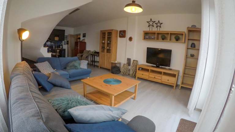 Die Ferienwohnung umfasst zwei Schlafzimmer und ein Wohnzimmer mit einem Flachbild-TV. Die gut ausgestattete Küche ist mit einem Kühlschrank und einem Geschirrspüler ausgestattet. Es gibt ein Badezimmer mit Dusche, und Handtücher sowie Bettwäsche werden bereitgestellt. Der Zugang erfolgt über eine private Terrasse mit Bergblick.