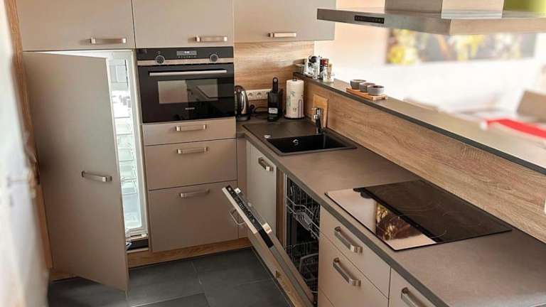 Die Ferienwohnung ist mit 3 Schlafzimmern, einer Küche ausgestattet mit einem Kühlschrank und einem Geschirrspüler, einem Flachbild-TV sowie einem Sitzbereich eingerichtet. Es gibt 2 Badezimmer, die jeweils mit einer Dusche ausgestattet sind. Handtücher und Bettwäsche werden bereitgestellt.