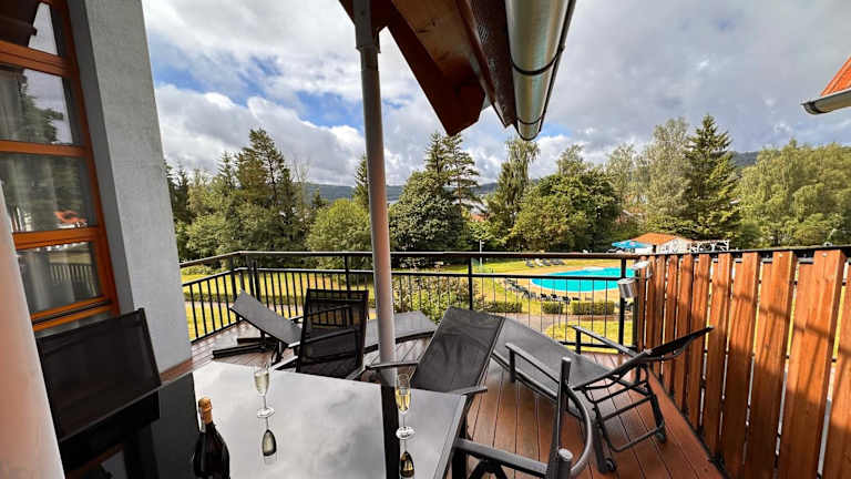 Das Lipno Holiday Penthouse bietet eine moderne Ferienwohnung mit einem Aussenpool, einem Garten und einer Terrasse. Diese Unterkunft verfügt über kostenloses Wifi sowie einen kostenlosen Privatparkplatz.