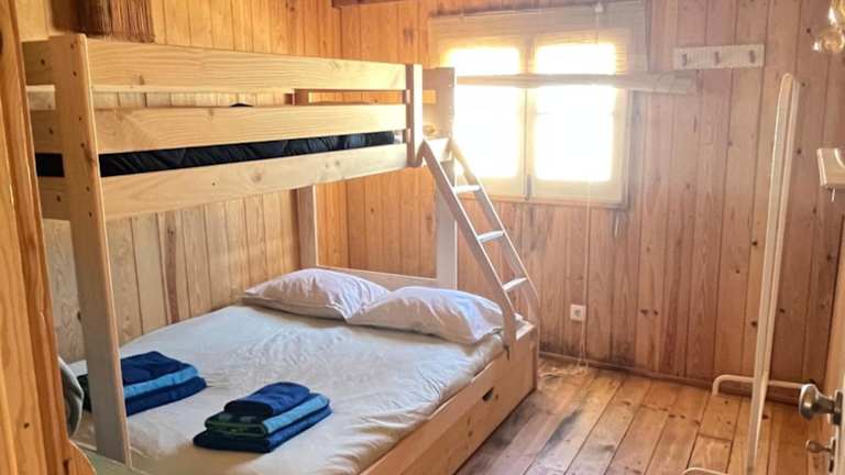 Das Chalet verfügt über zwei Schlafzimmer, ein Wohnzimmer und eine gut eingerichtete Küchenzeile mit Geschirrspüler und Mikrowelle.