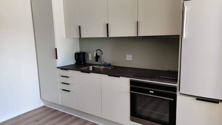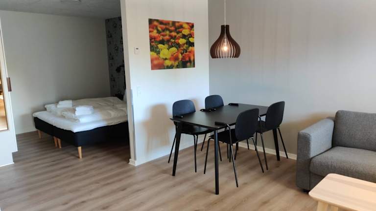 Die Ferienwohnung verfügt über ein Schlafzimmer sowie ein Wohnzimmer mit einem Flachbild-TV. Eine voll ausgestattete Küche mit Kühlschrank und Ofen ist ebenfalls vorhanden. Das Badezimmer bietet eine Dusche. Handtücher und Bettwäsche werden bereitgestellt. Schallisolierte Zimmer sorgen für eine angenehme Bequemlichkeit.