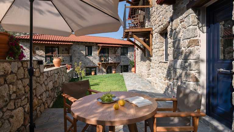 Die Wohneinheiten der Lithos Villas Apollon bieten Platz für individuelle Bedürfnisse. Einige Einheiten verfügen über eine Terrasse oder einen Balkon, wo Gäste entweder einen Blick auf die Stadt oder die Berge geniessen können.