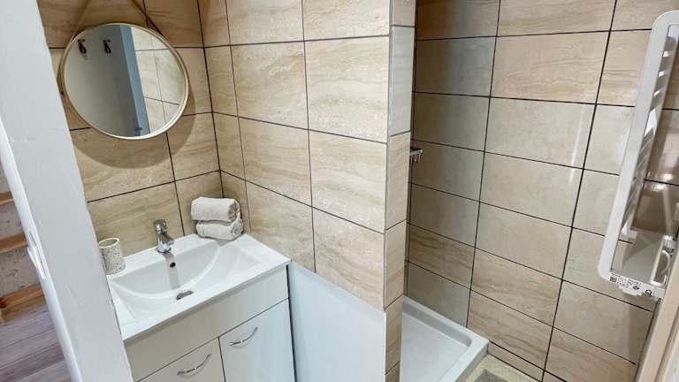 Die Ferienwohnung umfasst 1 Schlafzimmer, eine gut ausgestattete Küche mit Kühlschrank und Mikrowelle sowie 1 Badezimmer mit Dusche und kostenlosen Pflegeprodukten. Handtücher und Bettwäsche werden bereitgestellt. Shallisolierte Zimmer sorgen für eine ruhige Atmosphäre.