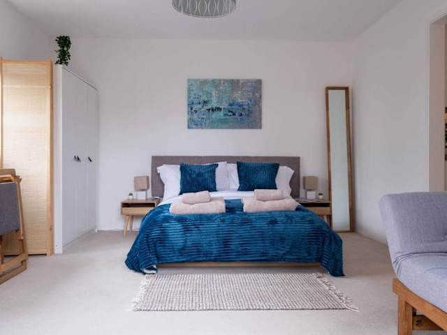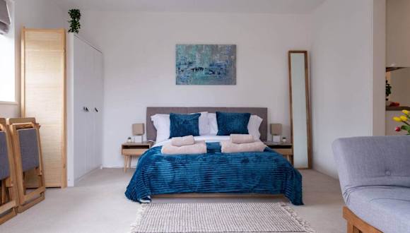 Das Little Nye verfügt über ein Schlafzimmer und ein Wohnzimmer, ausgestattet mit einer gut ausgestatteten Küche, die einen Ofen umfasst. Zudem werden Handtücher und Bettwäsche bereitgestellt.