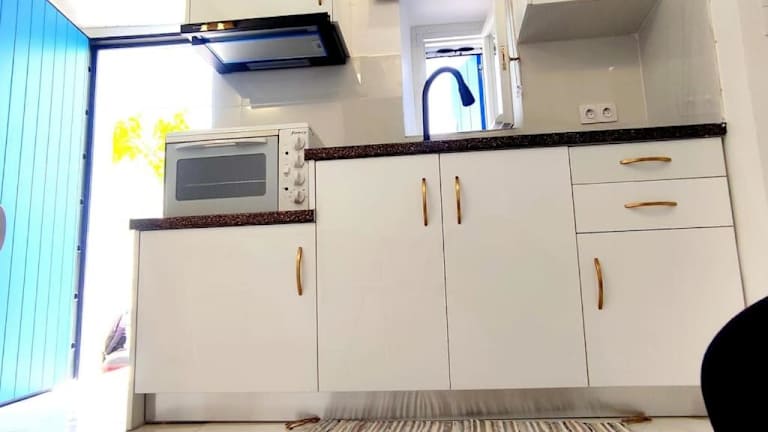 Das Ferienhaus bietet ein Schlafzimmer sowie eine Küche, die mit einem Kühlschrank und einem Ofen ausgestattet ist. Es hat ein Badezimmer mit Dusche und Haartrockner. Handtücher und Bettwäsche werden bereitgestellt.