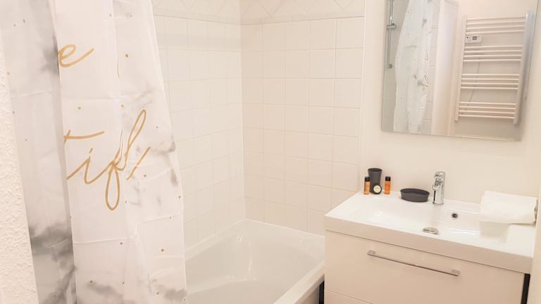 Die Ferienwohnung verfügt über ein Schlafzimmer, ein Wohnzimmer sowie eine voll ausgestattete Küche mit Kühlschrank und Kaffeemaschine. Das Badezimmer ist mit einer Badewanne und kostenlosen Pflegeprodukten ausgestattet. Handtücher und Bettwäsche sind vorhanden.