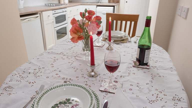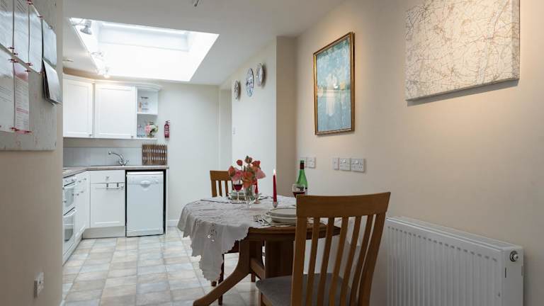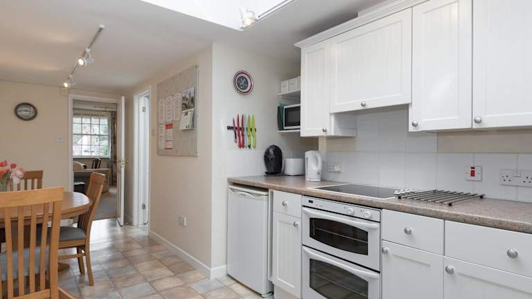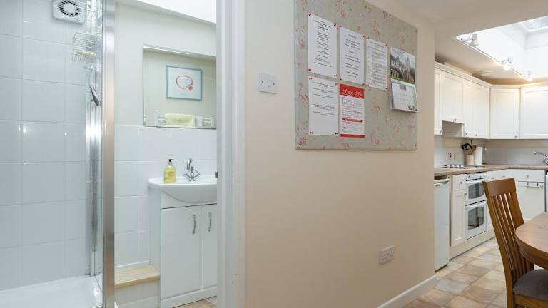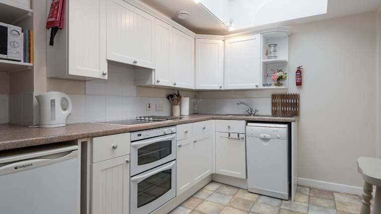 Das Ferienhaus verfügt über eine eigene Küche mit Geschirrspüler, ein Badezimmer mit Dusche sowie eine Waschmaschine. Handtücher und Bettwäsche sind vorhanden.