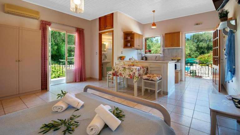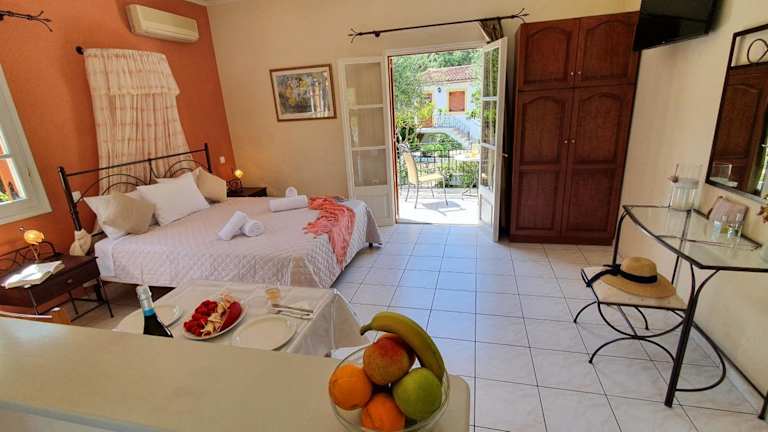 Die Unterkunft LIvadi Studios with Pool befindet sich in der Nähe der Strände Paralia Charami und Kanoni in der Region Ionische Inseln, im malerischen Lákka.