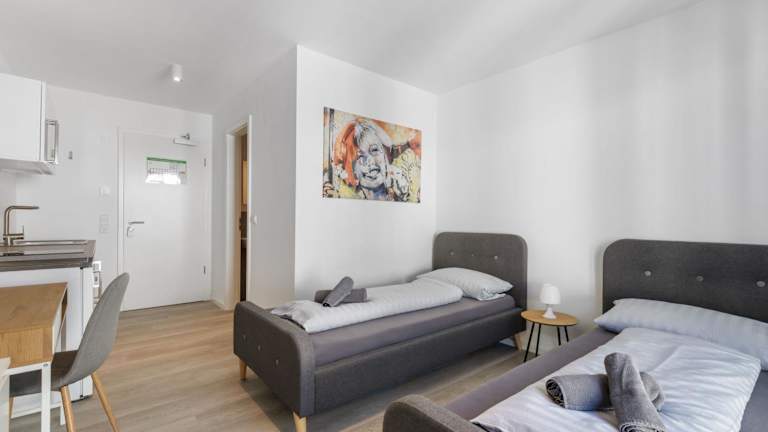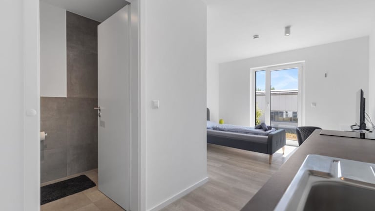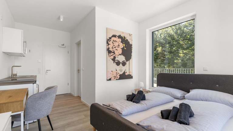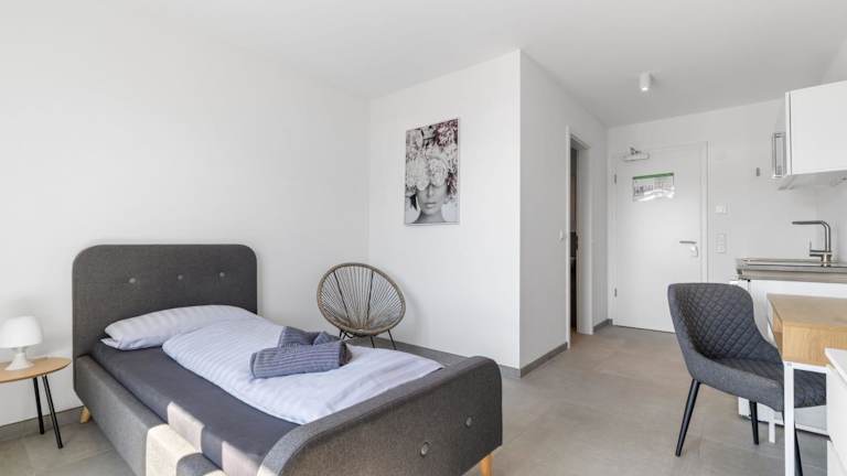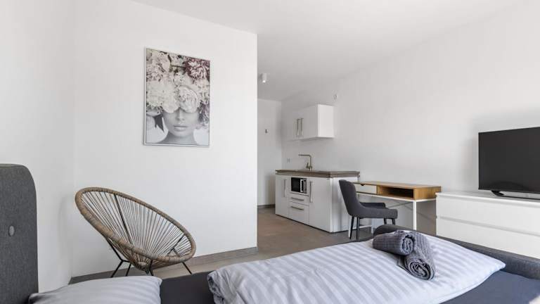 LivingBoxx Karlsruhe - Messe bietet neuwertige Apartments mit einer gut ausgestatteten Küche. Die Nichtraucherunterkunft überzeugt durch ihre moderne Ausstattung und ist ideal für einen längeren Aufenthalt oder Ferien.