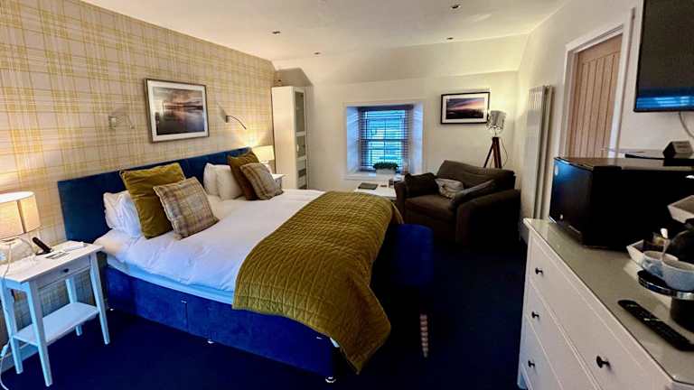 In der Unterkunft wird ein à la carte, kontinentales sowie englisches/irisches Frühstück angeboten. Das Restaurant serviert britische, schottische und Meeresfrüchte-basierte Küche, mit Optionen für Vegetarier, milchfreie und vegane Gäste auf Anfrage. Zudem sind Lunchpakete verfügbar.