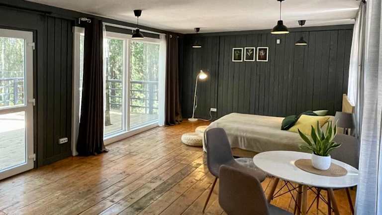 Die Lodge "Ezīša Midziņa" befindet sich in der idyllischen Region Livland, in Ķegums. Der nächstgelegene Flughafen ist der Flughafen Riga, welcher 64 km von der Unterkunft entfernt liegt.