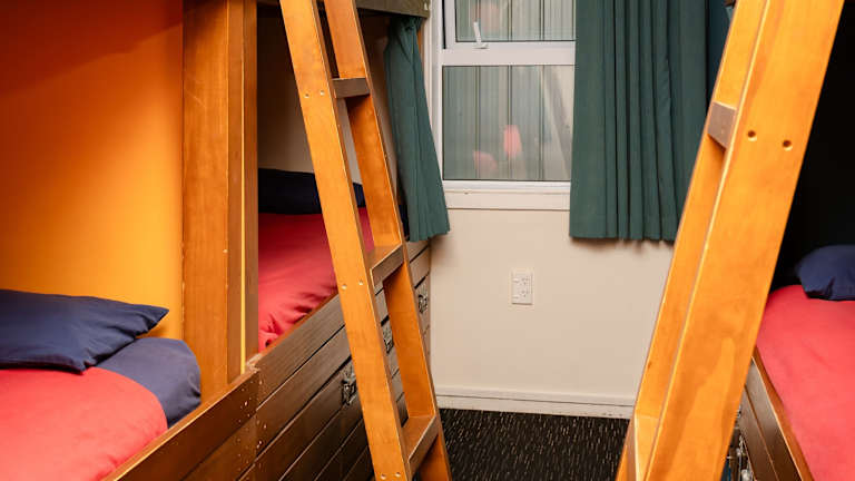 Die Unterkunft bietet ein erwachsenenfreundliches Ambiente mit entweder Schlafsälen oder privaten Zimmern. Die Schlafsäle sind mit massgefertigten Holzbunkbetten, Sichtschutzvorhängen und Stauraum ausgestattet. Die privaten Zimmer verfügen über eine Sitzgruppe, einen Flachbildfernseher mit DVD-Player sowie panelheizungen. Die Toilette und die Badezimmeranlagen sind gemeinschaftlich genutzt.