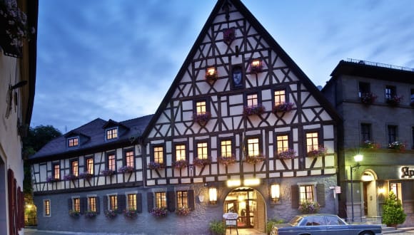Romantische Gaststuben für 120 Personen. Idyllisches Gartenrestaurant für 35 Gäste. Frische regionale, internationale Küche, große Auswahl an Frankenweinen und Bierspezialitäten. Nicht Auszeichnung und Ehre sind uns wichtig. Ihre Zufriedenheit ist unser Antrieb. Dieter Müller steht für eine ehrliche, leise, sehr regional orientierte, fränkische Küche. Natürlich hat auch er Spaß am Probieren und Verändern. Doch fühlt er sich der Einfachheit und Natürlichkeit von Produkten und Speisen verpflichtet. Den Wechsel auf der Speisenkarte überlässt er getrost dem Wetter und der Jahreszeit.