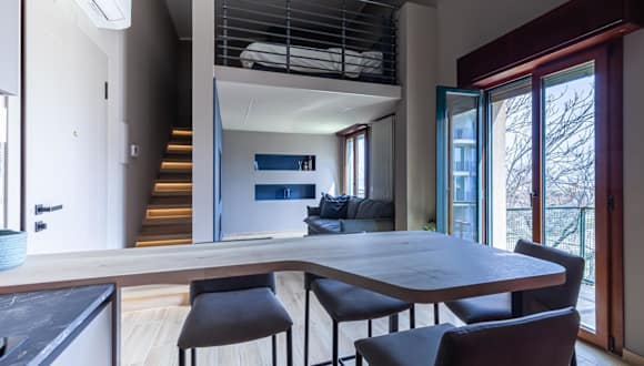 Das Loft umfasst 1 Schlafzimmer und eine Küche, ausgestattet mit einem Kühlschrank und einem Geschirrspüler. Ein Flachbild-TV und ein Sitzbereich sind ebenfalls vorhanden. Das Badezimmer ist mit einem Bidet ausgestattet und bietet eine heimelige Atmosphäre.