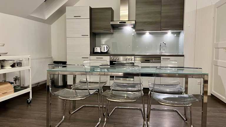 Die Ferienwohnung umfasst ein Schlafzimmer, ein Wohnzimmer sowie eine voll ausgestattete Küche, die mit einem Kühlschrank und einer Kaffeemaschine ausgestattet ist. Des Weiteren gibt es ein Badezimmer mit einer Dusche und kostenlosen Pflegeprodukten. Handtücher und Bettwäsche werden bereitgestellt.