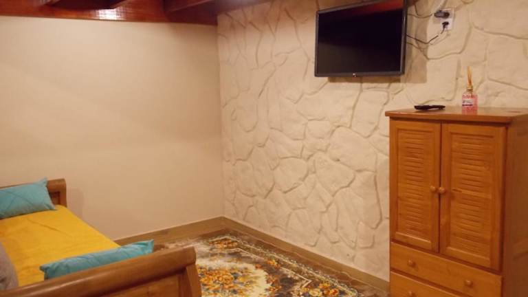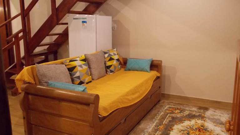 Das Ferienhaus besteht aus einem separaten Schlafzimmer, einem Wohnzimmer, einer voll ausgestatteten Küche mit Ofen und Mikrowelle sowie einem Badezimmer.