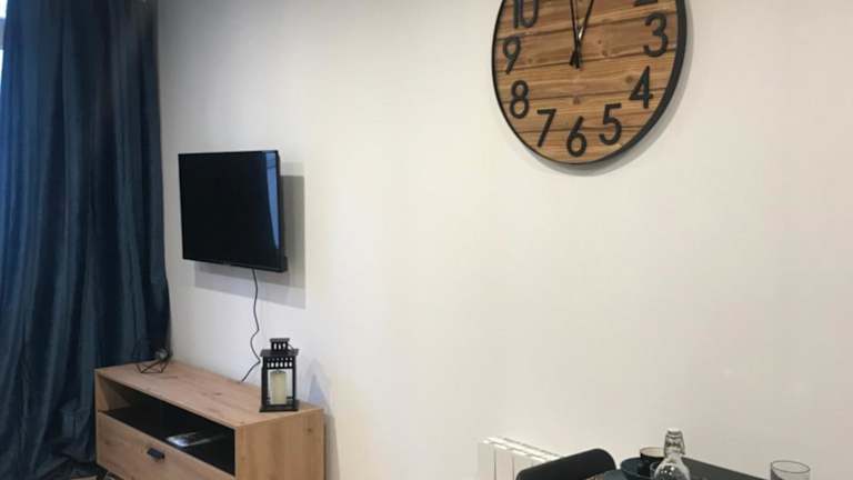 Die Ferienwohnung verfügt über ein Schlafzimmer und ein Wohnzimmer, welches mit einem Flachbild-TV ausgestattet ist. Eine voll ausgestattete Küche ermöglicht das Zubereiten eigener Mahlzeiten.