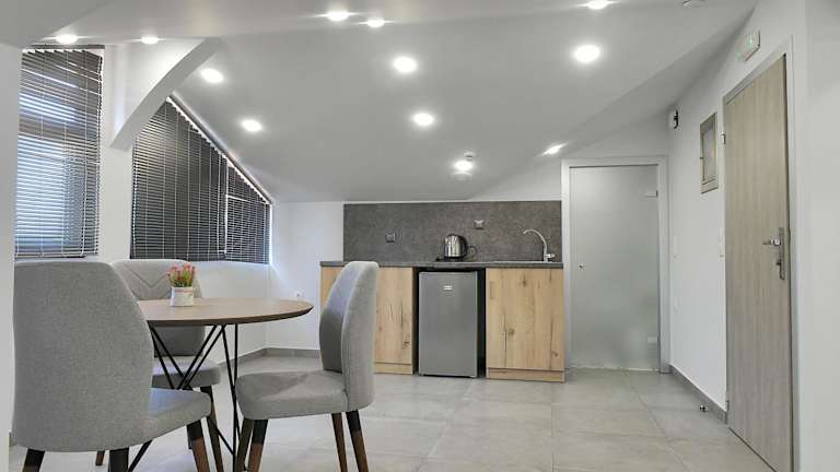 Die Wohneinheiten sind mit einer voll ausgestatteten Küchenzeile inklusive Esstisch, Flachbild-TV mit Satellitenkanälen und einem eigenen Badezimmer mit Badewanne oder Dusche ausgestattet. Jede Einheit verfügt über einen Kühlschrank, Herdplatte, Wasserkocher sowie kostenlose Pflegeprodukte und einen Haartrockner.
