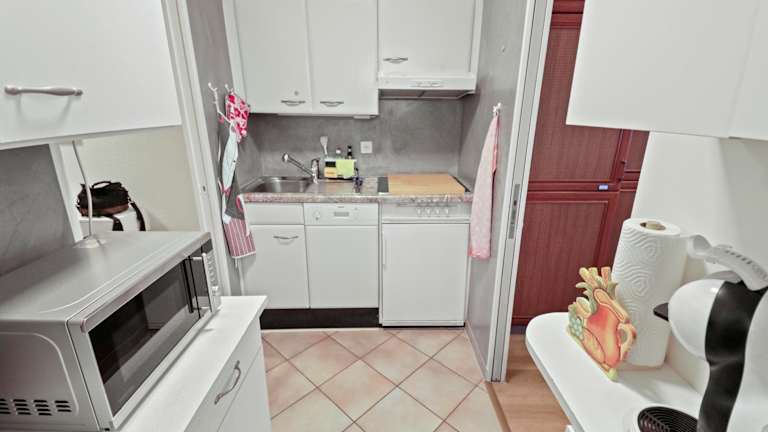 Die Ferienwohnung verfügt über einen Balkon mit Bergblick, 2 Schlafzimmer, ein Wohnzimmer mit einem Flachbild-TV sowie eine gut ausgestattete Küche mit Kühlschrank und Geschirrspüler. Ein Badezimmer mit Bidet ist ebenfalls vorhanden. Handtücher und Bettwäsche werden zur Verfügung gestellt.