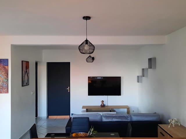 Vieux-Habitants, in der Region Basse-Terre. Die Unterkunft liegt nur 1,6 km vom Strand Plage de la Voûte entfernt und bietet einen Balkon mit Meerblick sowie eine Terrasse. Der Flughafen Pointe-à-Pitre ist 53 km entfernt.