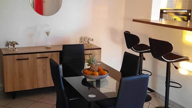 Die Ferienwohnung ist klimatisiert und umfasst 2 Schlafzimmer. Sie bietet zudem einen Flachbild-TV, einen Essbereich sowie eine Küche, die mit Kühlschrank und Ofen ausgestattet ist.