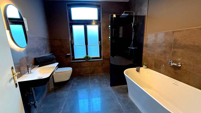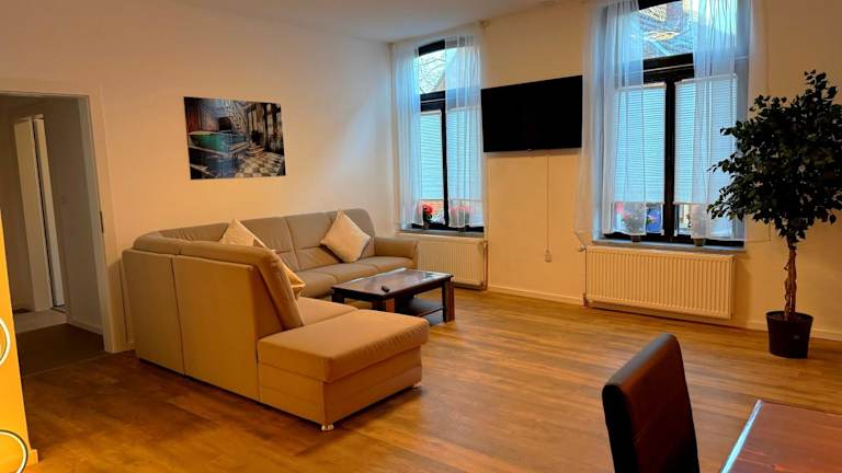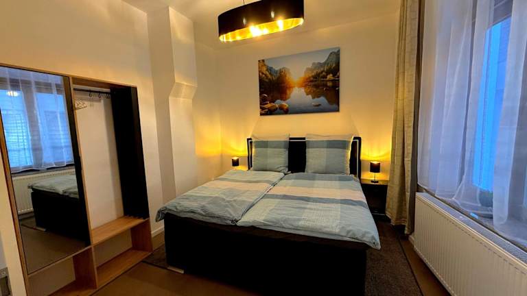 Die Ferienwohnung Logis-Apartment bietet Platz in zwei Schlafzimmern sowie einer voll ausgestatteten Küche und zwei Badezimmern. Zudem ist die Unterkunft eine Nichtraucherunterkunft und eignet sich nicht für Junggesellen- oder Junggesellinnenabschiede.